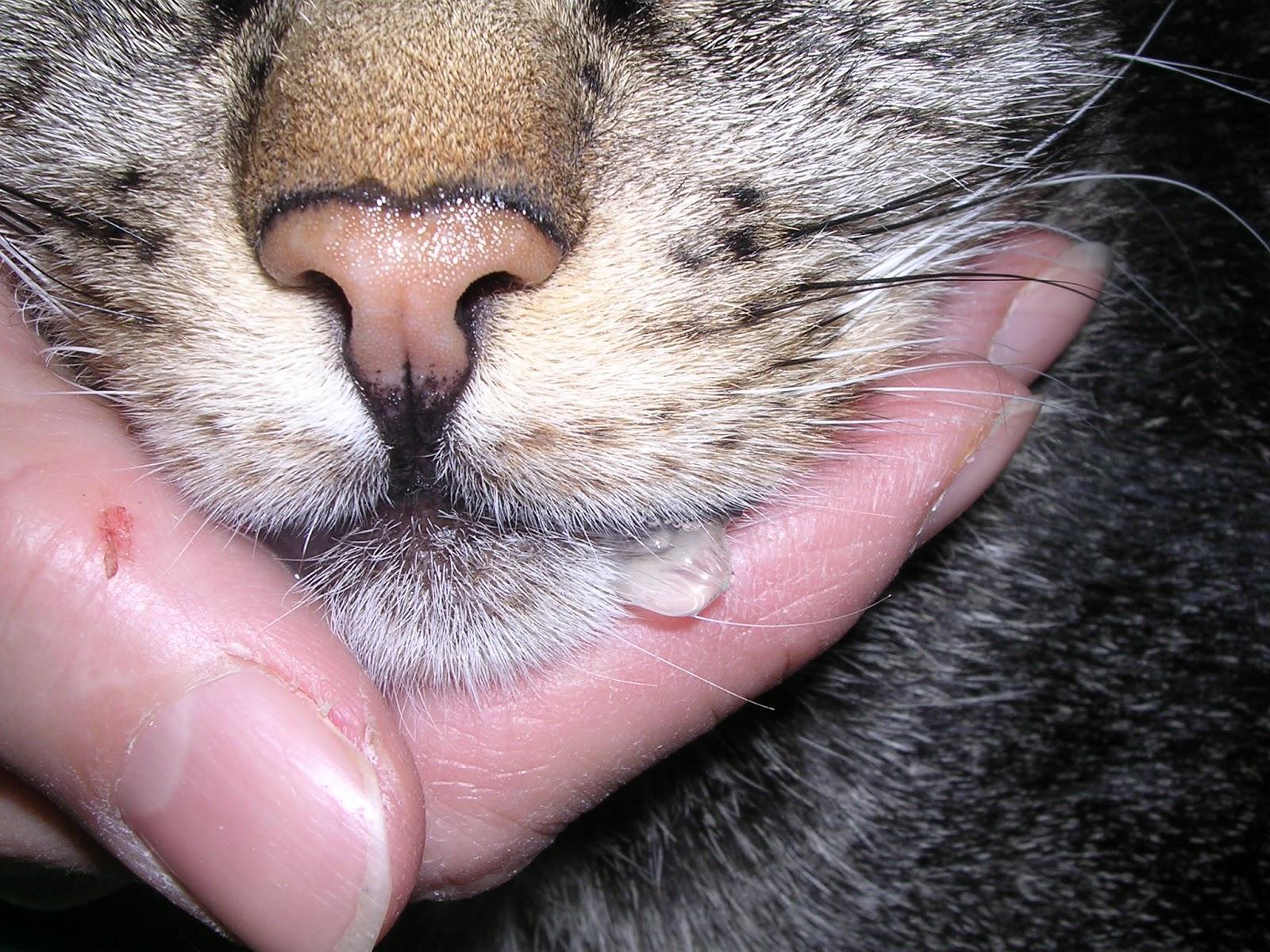 Muitas vezes as razões que levam a um gato com dor estão relacionadas com alterações na boca e, embora o felino mantenha uma atitude mais ou menos normal e se interesse pela comida, é-lhe impossível deglutir. Isto provoca a saída constante de saliva e inúmeras idas ao comedouro, embora não consiga se alimentar corretamente.