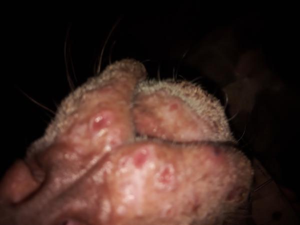 Meu cachorro ta com as feridas na boca e no nariz.acne queria saber qual tipo de remedio dou a ele