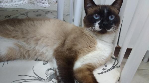 Minha gata "Malévola" ela é de raça siamês com raça não indefinida, ela é muito calma e saudável só que o problema ela solta muito pelo.