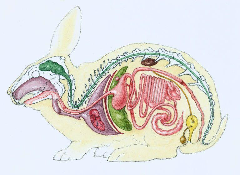 Neste sentido, a anatomia do coelho é bastante interessante também porque eles são animais monogástricos, ou seja, seu estômago é formado por um único compartimento. Em um coelho adulto este sistema chega a medir até aproximadamente 5 m, nos quais se depositam cerca de 100 g de alimento. Em seguida, encontramos o intestino delgado, onde ocorre uma degradação importante da massa de alimentos graças às secreções do fígado e pâncreas, de modo que os nutrientes sejam depois absorvidos pela mucosa do tecido.