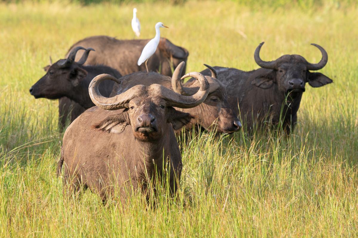 - Búfalo-africano (Syncerus caffer): como o búfalo-de-savana, uma espécie grande e agressiva encontrada na África subsaariana, ou o búfalo-de-floresta, menor, que habita florestas tropicais. Ambos desempenham papéis importantes nos ecossistemas africanos e estão entre as espécies mais perigosas do continente.