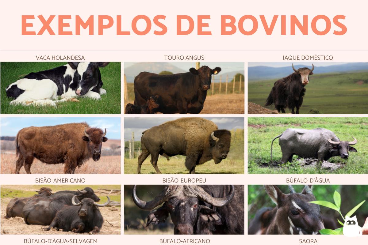Dentro deste gênero, encontramos os seguintes exemplos de bovinos: