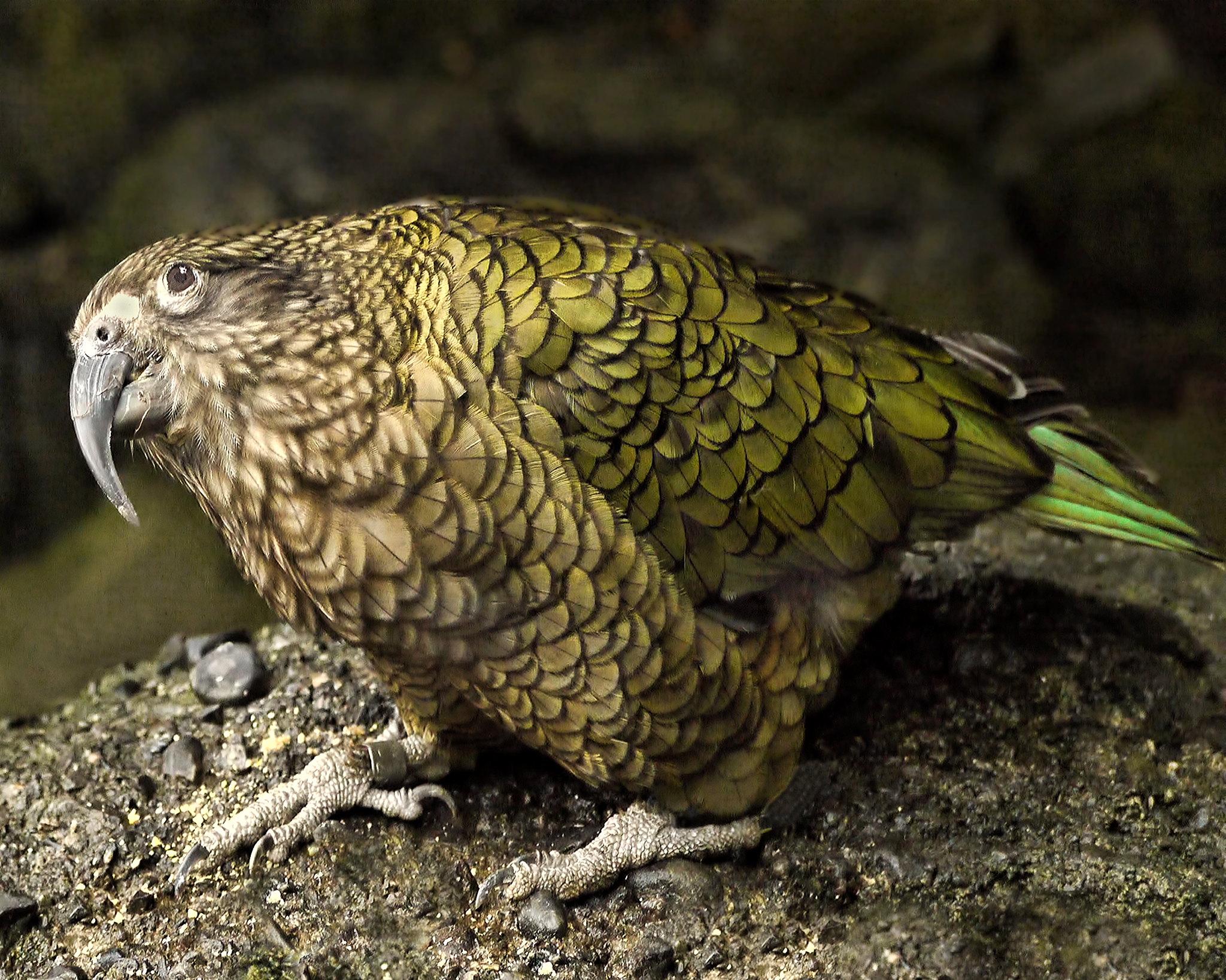 Também conhecido como papagaio-da-Nova-Zelândia, o Kea (Nestor notabilis) tem uma plumagem verde-oliva e um bico bastante resistente. Adora ficar nas árvores e sua dieta é composta por folhas, brotos e néctar das flores, além de insetos e larvas.