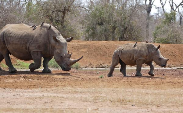 O rinoceronte-branco (Ceratotherium simum) habita na África do Sul, Botsuana, Quênia e Zâmbia, entre outros. Tem duas subespécies, o rinoceronte-branco-do-sul e o rinoceronte-branco-do-norte, extinto na natureza desde 2018. Mesmo assim, ainda há dois indivíduos do sexo feminino em cativeiro. É particularmente grande, pois um indivíduo adulto masculino pode ultrapassar 180 cm de altura e 2.500 kg de peso.
