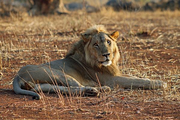 O leão (Panthera leo) é o animal com o qual fechamos a lista dos cinco grandes da África. Este superpredador é o único com dimorfismo sexual, o que nos permite diferenciar os machos, com sua crina densa, das fêmeas, que carecem dela. É considerado o maior felino da África e o segundo maior do mundo, somente atrás do tigre. Os machos podem chegar a 260 kg de peso, enquanto as fêmeas pesam no máximo 180 kg. A altura até a cernelha está entre 100 e 125 cm.