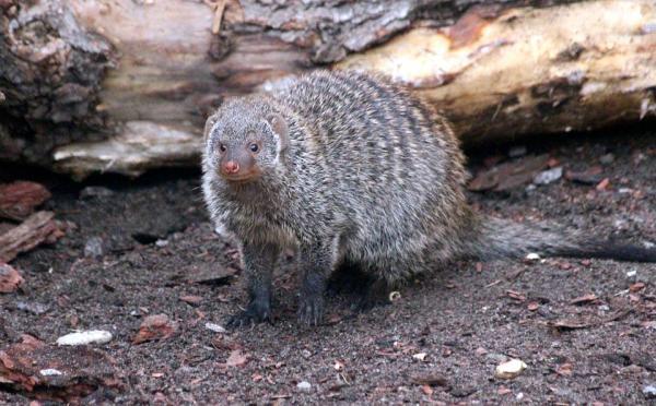 O mangusto-listrado (Mungos mungo) vive em diferentes países do continente africano. Este pequeno animal carnívoro não ultrapassa um quilograma de peso, porém, são animais muito violentos, com várias agressões entre diferentes grupos causando mortes e feridas entreeles. No entanto, suspeita-se que eles mantêm uma relação simbiótica com os babuínos hamadryas (Papio hamadryas).