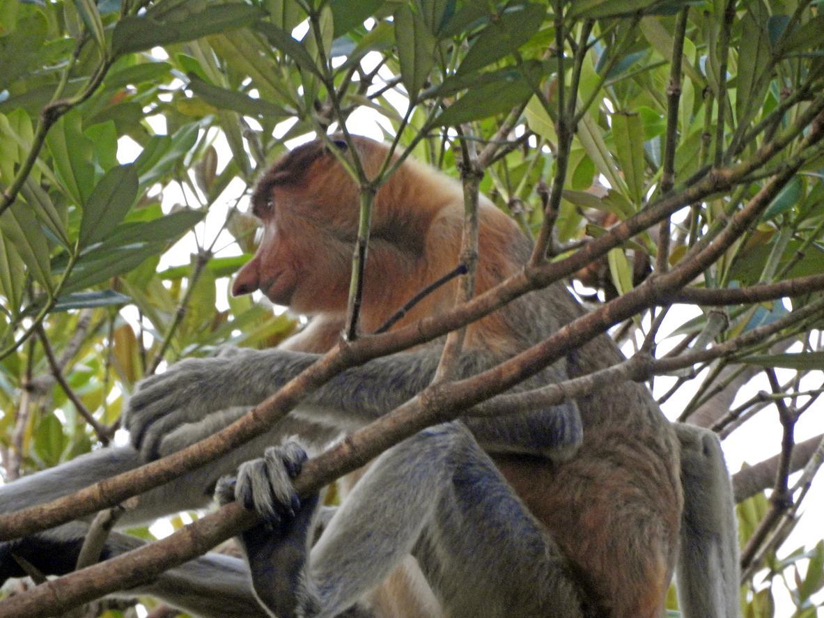 É a única espécie de seu gênero, do grupo conhecido como primatas catarrinos. O macaco-narigudo (Nasalis larvatus) é nativo da Indonésia e da Malásia, sendo associado especificamente a ecossistemas fluviais, como matas ciliares, manguezais, pântanos de turfa e água doce.
