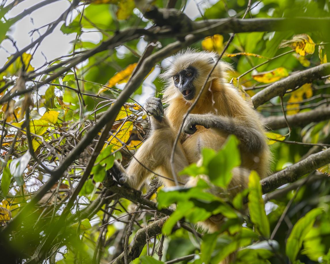 Este animal asiático consome basicamente folhas e frutos, e procura se manter longe de florestas altamente afetadas pelo desmatamento. No entanto, a destruição de seu habitat o impactou de forma importante, e juntamente à caça indiscriminada, é a razão para seu estado atual de perigo de extinção.