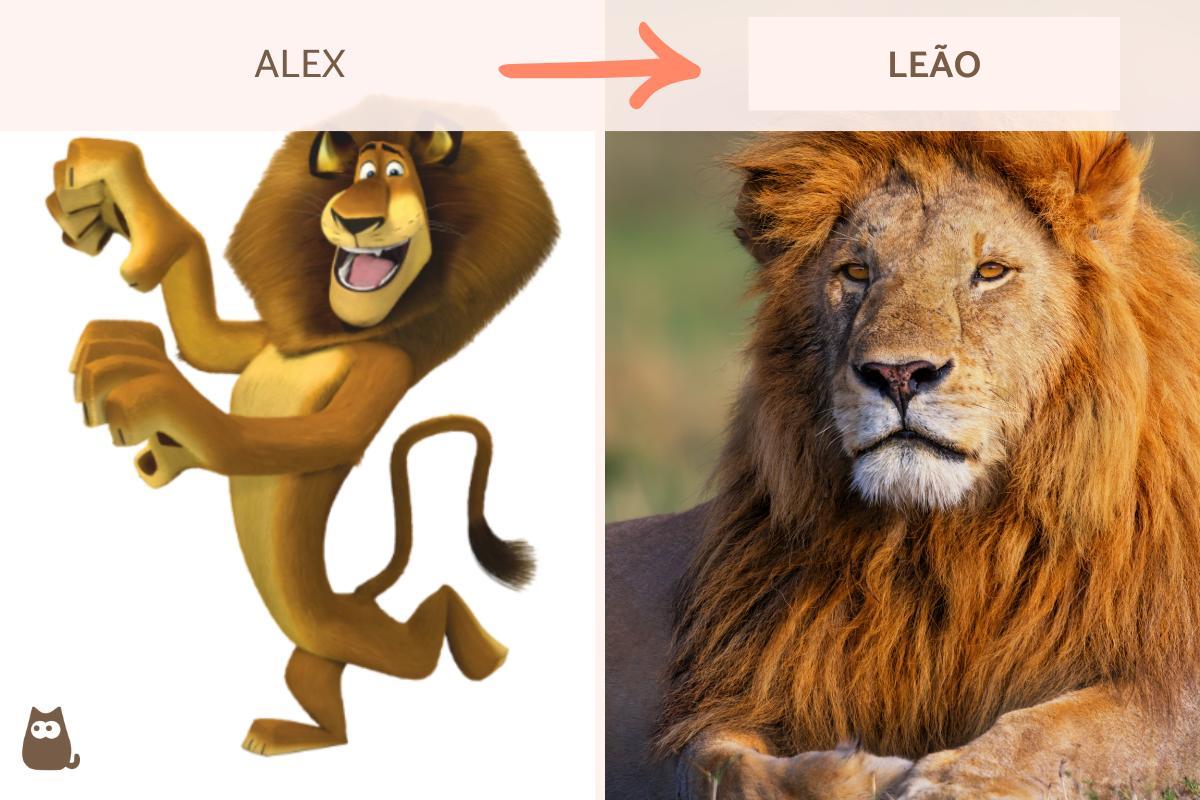 Este animal do filme Madagascar corresponde na vida real a um leão (Panthera leo), um dos maiores felinos que existem atualmente, do qual são reconhecidas duas subespécies. É nativo da África e da Índia, na Ásia. Ele se desenvolve em diversos habitats próprios dessas regiões, como savanas, matagais e áreas áridas, mas está ausente nas selvas. Os leões podem pesar entre 126 e 272 kg, com um comprimento de 2,4 a 3,3 m. A tonalidade da cor varia de acordo com as subespécies, mas em geral é bege, com diferentes intensidades, mais clara em direção ao ventre. Seu estado de conservação é "vulnerável", principalmente devido ao impacto em seu habitat e à caça.