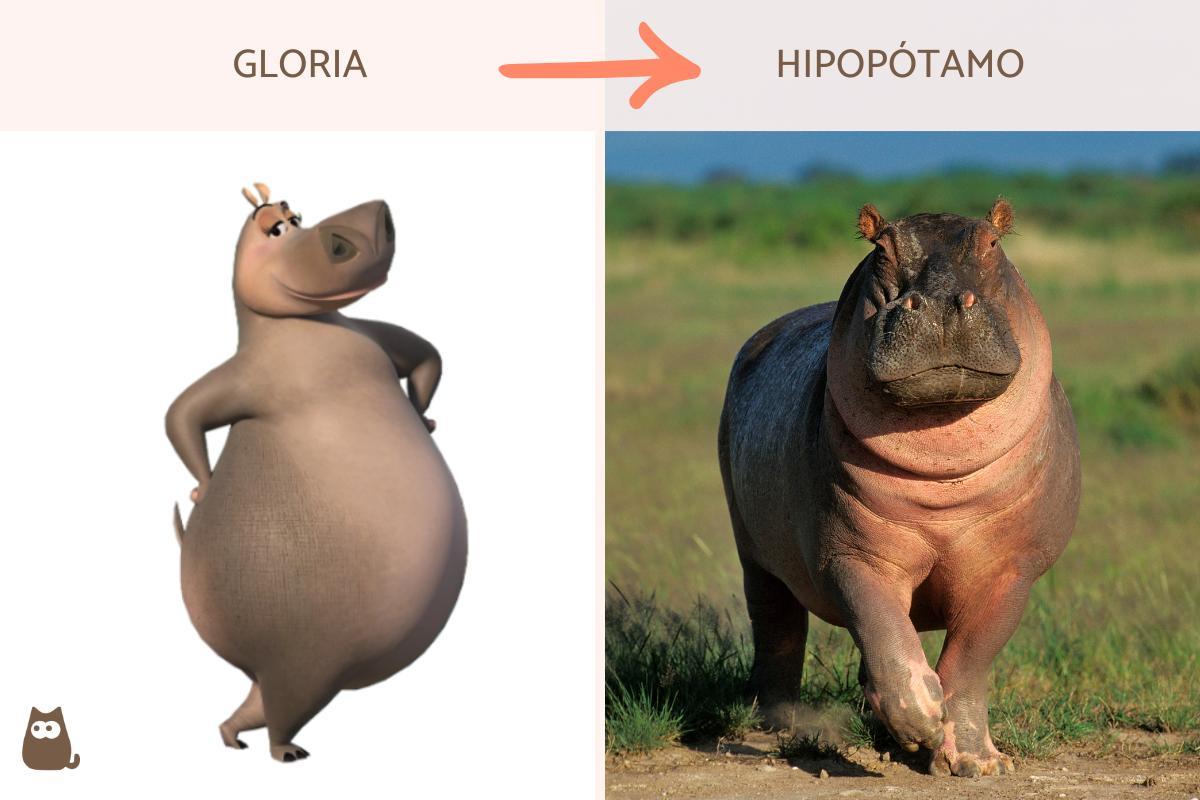 Este animal de Madagascar na vida real é um hipopótamo (Hippopotamus amphibius), uma espécie nativa da África subsaariana. Ele tem hábitos anfíbios, passando o dia na água e saindo à noite para se alimentar. Desenvolve-se em áreas associadas a rios, lagos, pântanos ou espaços lamacentos durante a estação seca. Um hipopótamo comum pesa entre 1,3 e 3,2 toneladas e pode ter um comprimento de 2 a 5 metros, com uma pele cinza púrpura ou ardósia; os machos são maiores e mais pesados que as fêmeas. Seu estado de conservação é "vulnerável" devido à perda de habitat e à caça para comercialização de carne e marfim presente em seus dentes caninos. No entanto, é relatado como extinto em vários países, como Argélia, Egito, Eritreia, Libéria e Mauritânia.