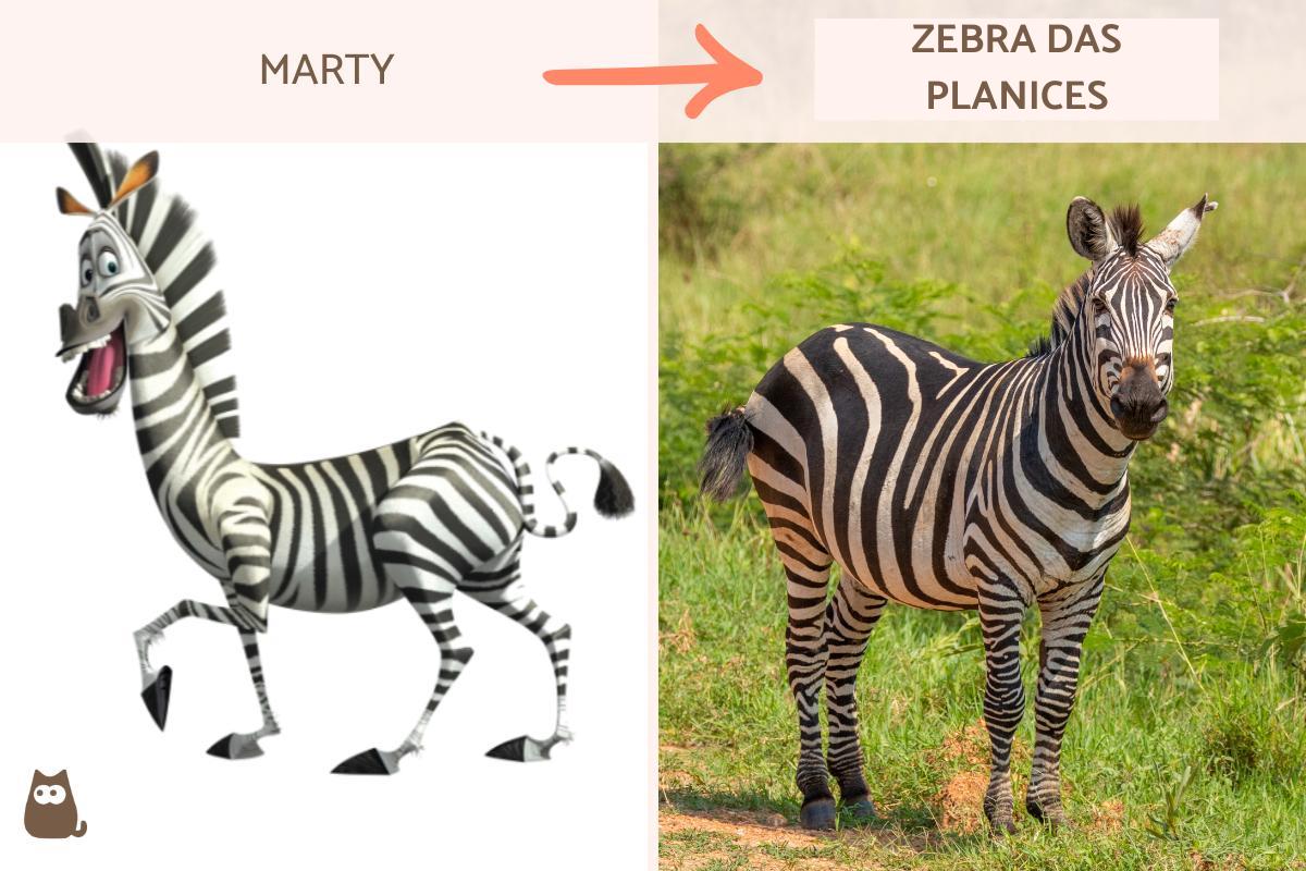 Outro dos animais destacados no filme Madagascar é Marty, que é muito amigo e próximo de Alex. Marty é alegre, divertido e aventureiro, mas sonha com a vida fora do zoológico. Esse desejo de explorar o exterior é o que desencadeia a aventura dos personagens, já que ele escapa do cativeiro e seus amigos depois saem em sua busca.