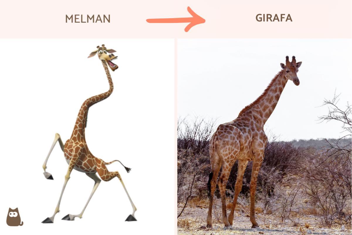 Melman é uma girafa (Giraffa camelopardalis). Embora os especialistas em girafas da União Internacional para a Conservação da Natureza (UICN) reconheçam apenas uma espécie e nove subespécies, há posições divergentes a respeito. As girafas são os animais terrestres mais altos que existem, podendo medir cerca de 6 metros, sendo as fêmeas um pouco menores, com uma massa média de 1,1 toneladas. Elas têm uma cor de fundo esbranquiçada ou creme com manchas escuras que formam um padrão único. São classificadas na categoria "vulnerável", sendo as principais causas o impacto no habitat e a caça.