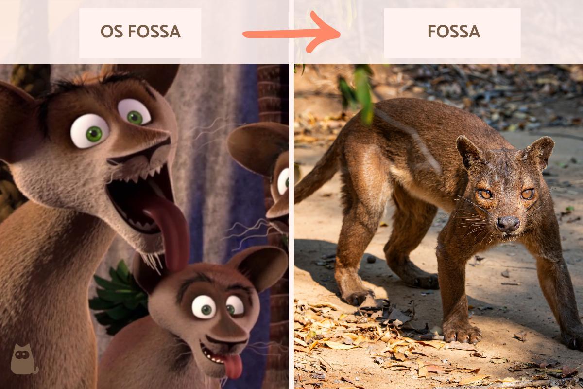 No filme Madagascar, há um grupo de animais carnívoros que representam os vilões, mas que não têm participação falada nem um nome particular. São as fossas, que correspondem à família Eupleridae e à espécie Cryptoprocta ferox. Entre as particularidades desta espécie está sua semelhança com um felino. Inicialmente, teve uma classificação controversa, mas finalmente foi identificada em sua própria família, que é única e endêmica da ilha. As fossas medem entre 60 e 80 cm, com uma massa que varia de 7 a 12 kg. Apresentam uma coloração marrom avermelhada uniforme, embora o ventre seja mais claro. São os maiores carnívoros que habitam em Madagascar e se desenvolvem em diversos tipos de florestas. No entanto, estão classificados como "vulneráveis" devido à caça e à perda de habitat.