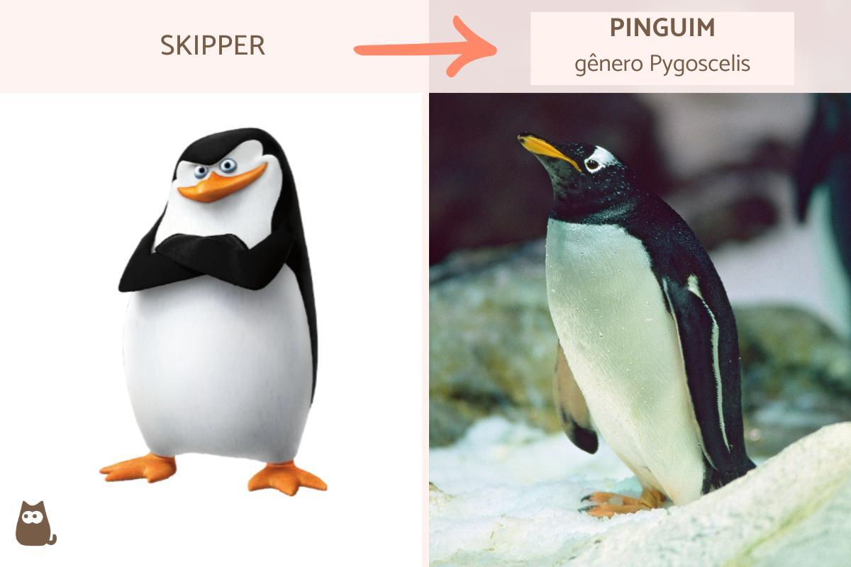 Não está totalmente claro a que espécie pertencem os pinguins de Madagascar, mas parece que correspondem ao gênero Pygoscelis, nativo do Polo Sul, na Antártida e regiões próximas. Os personagens podem ser uma mistura entre o pinguim-de-barbicha (Pygoscelis antarcticus) e o pinguim-papua (Pygoscelis papua). O primeiro mede cerca de 72 cm, com pesos entre 3 e 5 kg, e tem plumagem preta e branca, com o bico preto. O segundo, também preto e branco, tem o bico preto com laranja brilhante, semelhante ao dos personagens; em média mede 75 cm e pesa entre 4,5 e 8,5 kg. Ambas as espécies são classificadas como "de menor preocupação".