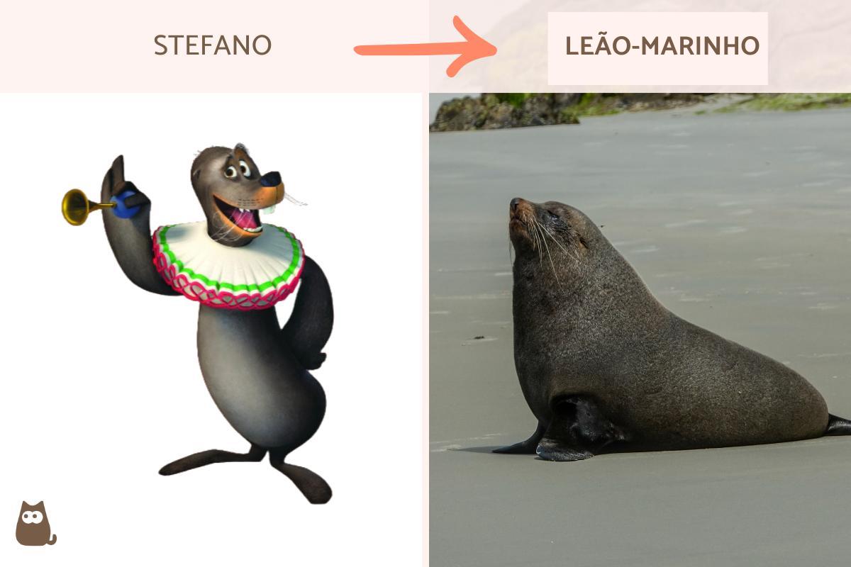 Stefano é um divertido personagem com sotaque italiano que deseja realizar o ato de ser lançado como uma bala de canhão em um circo. Este animal do filme Madagascar é uma representação de um leão-marinho, e embora existam várias espécies desses otarídeos, Stefano poderia ser um leão-marinho-da-nova-zelândia (Phocarctos hookeri), nativo da Austrália e Nova Zelândia. Um macho pode medir até cerca de 2,7 m e pesar de 300 a 450 kg; possui uma coloração marrom que pode variar em intensidade. Está classificado como "em perigo de extinção" devido à sobrexploração que sofreu no passado.