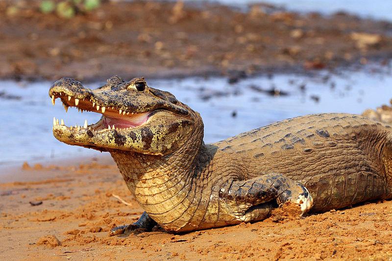 Comecemos pelos répteis, dentre os animais que vivem no Pantanal, os jacarés são alguns dos mais famosos por habitarem a região: