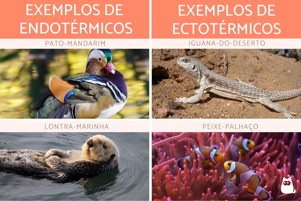 Agora que já sabemos a definição de animais endotérmicos e ectotérmicos, vejamos alguns exemplos específicos de ambos os grupos: