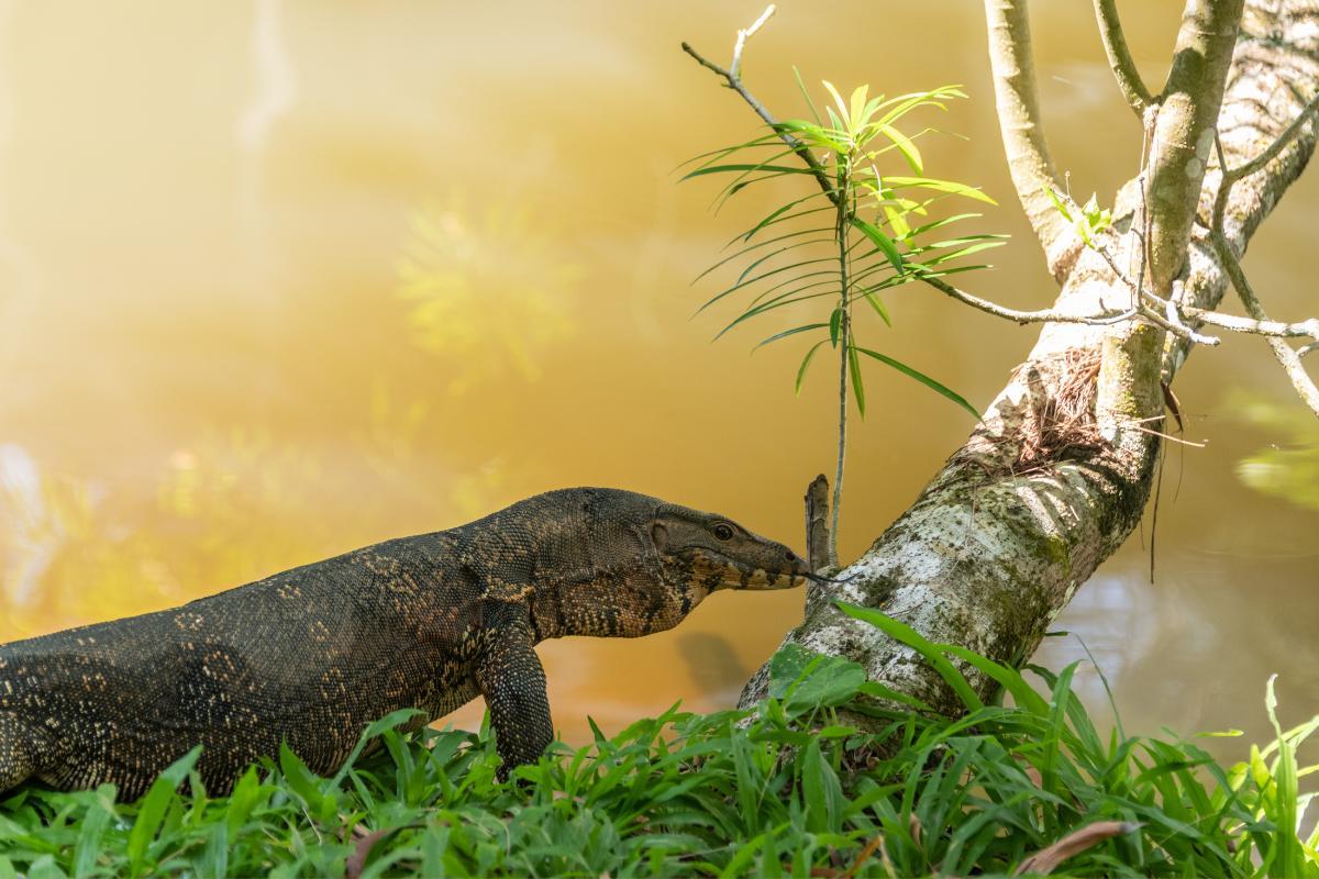 O monitor de água asiático (Varanus salvator) é outro animal perigoso de Bali. É um lagarto da região asiática que prospera na Indonésia, China, Camboja e Vietnã, entre outras regiões. O tamanho e o peso giram em torno de 1,5 m e 19,5 kg, embora possam crescer um pouco mais. É sem dúvida um lagarto grande e musculoso, de cor marrom escuro com manchas claras ou amareladas.