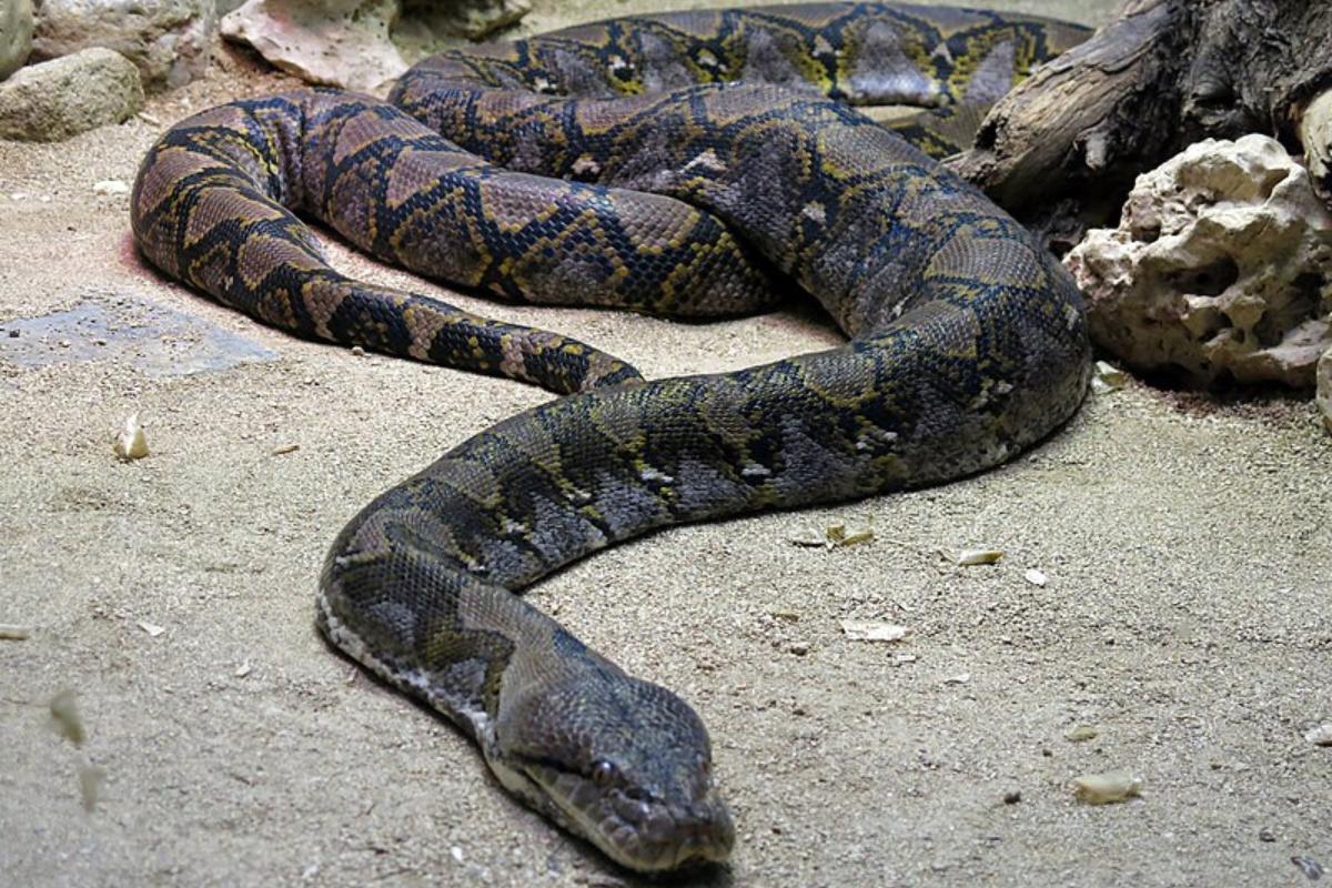 A píton reticulada (Malayopython reticulatus) é nativa da Ásia e, entre outras regiões, pode ser encontrada em Bangladesh, Camboja, Índia, Laos, Cingapura e Indonésia, incluindo as Ilhas Menores da Sonda. Pode medir cerca de 6 m, mas indivíduos acima deste tamanho são raros. Porém, é a cobra mais longa da Ásia, pesando até cerca de 75 kg.