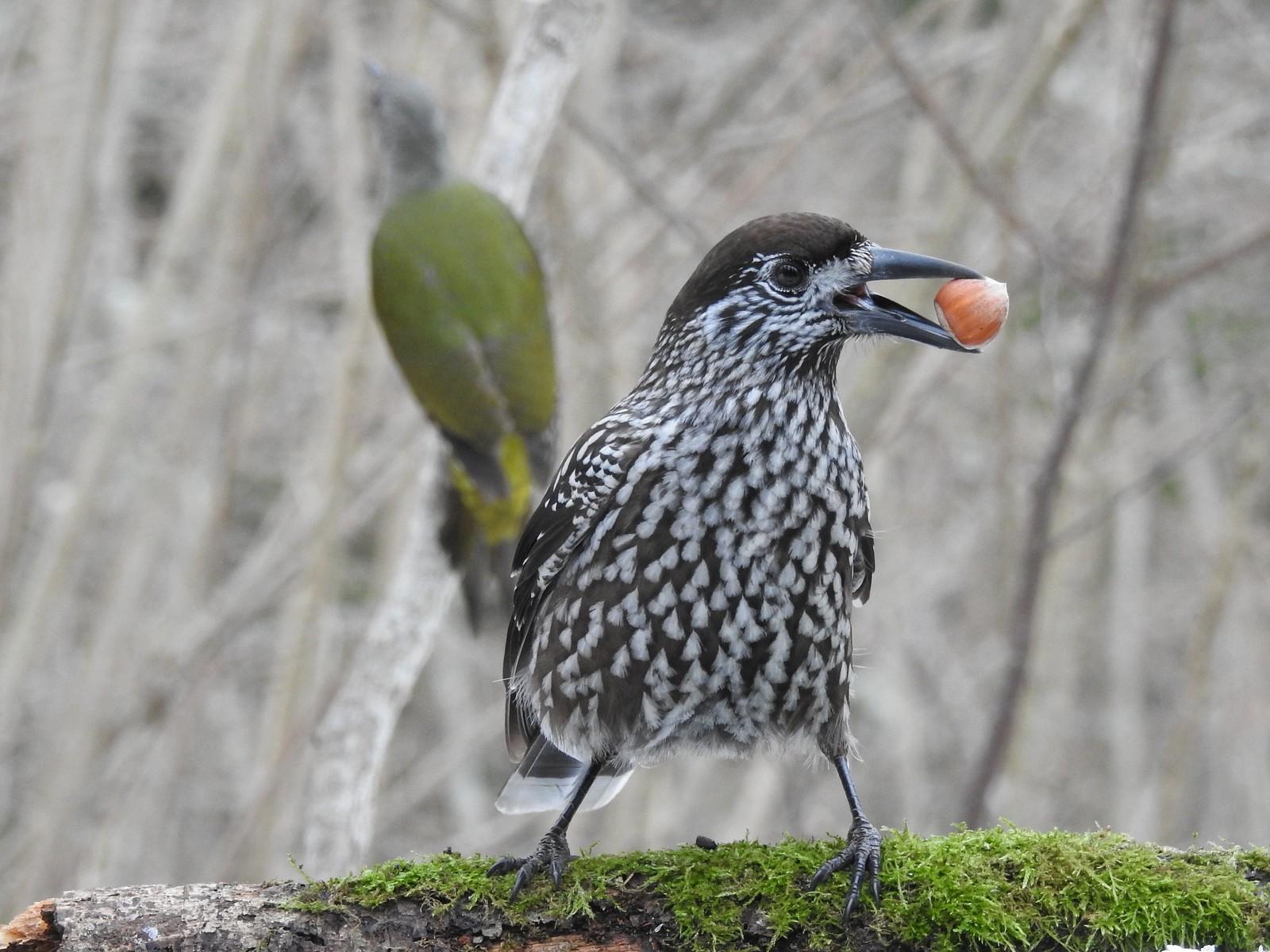 Os quebra-nozes são aves de bico fino e cauda curta da família Corvidae. Alcançam cerca de 32 cm de comprimento e são encontrados na Eurásia e na América do Norte. Se alimenta principalmente de sementes.