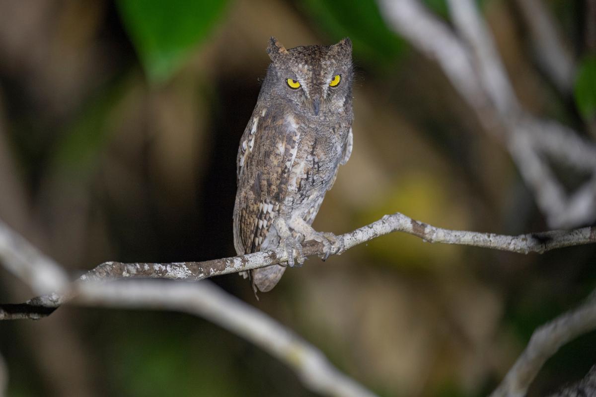 Esta coruja tem ampla distribuição, desde o Senegal até a Libéria, e na região leste, do Sudão ao Quênia. Mede entre 16 e 21 cm, com envergadura de 50 a 64 cm e peso de 60 a 135 g. As fêmeas são mais pesadas que os machos.