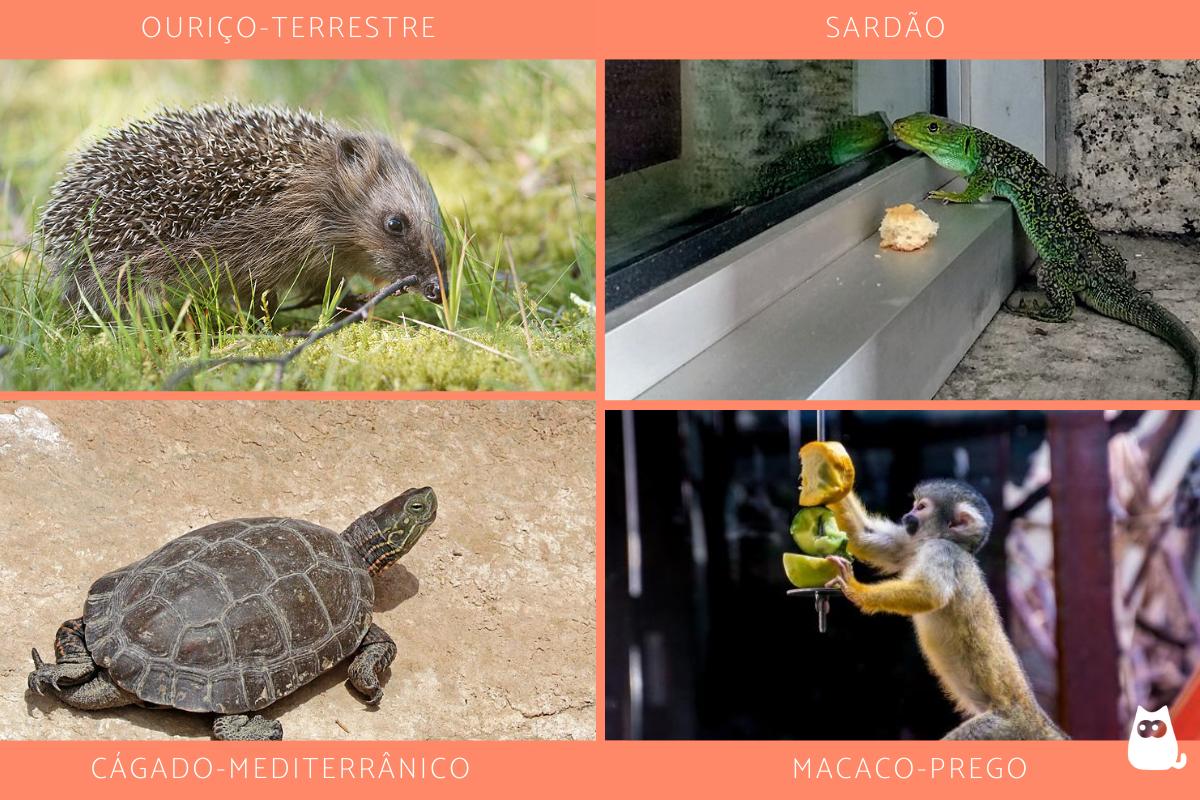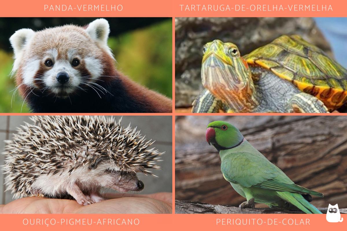 Damos como exemplo várias espécies que podemos encontrar como animais de estimação, mas que não deveriam ser: