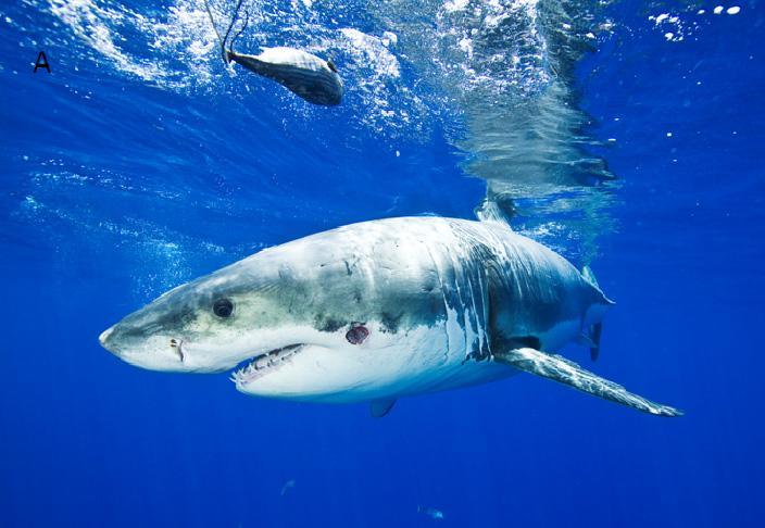 - Tubarão-branco (Carcharodon carcharias) e diversas espécies de peixes.