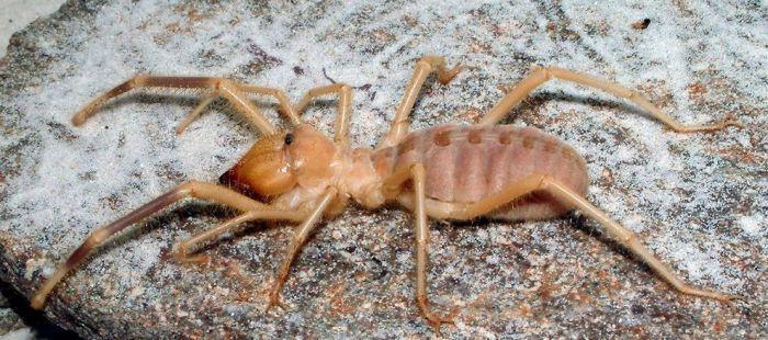 A aranha-camelo recebe seu nome pela forma alongada de suas pernas, que são muito parecidas com as pernas de um camelo. Eles têm 8 membros e cada um deles pode medir até 15 cm de comprimento.