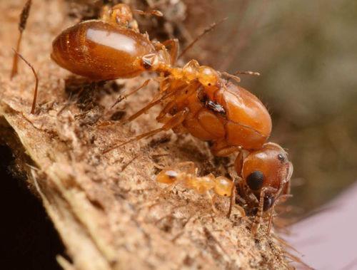 Você sabia que também existem insetos que vivem nos troncos das árvores? Geralmente, associamos as formigas a animais que vivem no chão. Porém, nem todas têm esse comportamento. A formiga alloumerus (Allomerus decemarticulatus), que habita a região amazônica, vive especialmente em um tipo de planta com flor, a qual pertence à espécie Hirtella physophora, com a qual desenvolveu uma estreita relação de mutualismo, já que a planta lhe fornece alimento e espaço para a criação dos formigueiros, enquanto que as formigas defendem ferozmente a pequena árvore de qualquer animal, ou até de qualquer outra planta, que possa lhe causar algum dano.