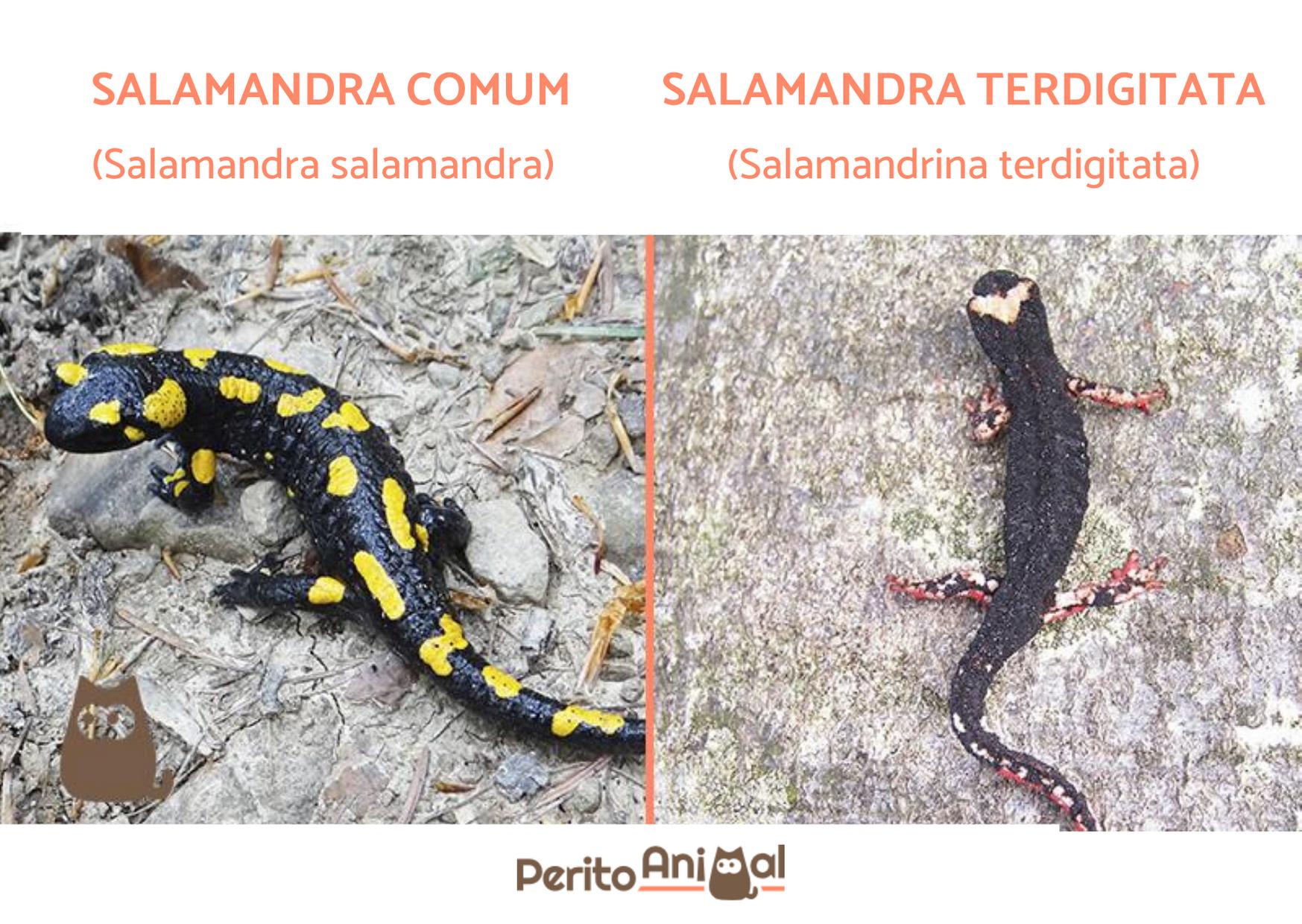 Outro exemplo é a Salamandra Terdigitata (Salamandrina sp.), que tem a parte ventral do corpo tingida de vermelho, preto e branco. O vermelho está concentrado nas costas, cauda e membros. Quando perturbadas, elas levantam a cabeça e as pernas enquanto curvam a cauda em direção à cabeça. Assim, eles mostram a cor vermelha e expulsam os predadores.