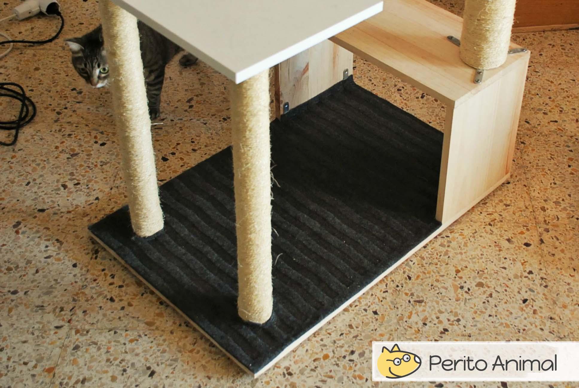 - Se fizer um arranhador de vários andares, tenha em conta que deve ter muito cuidado com as medidas. Certifique-se de que tudo coincide e utilize um nível para confirmar que a base e os andares estão direitos e alinhados.