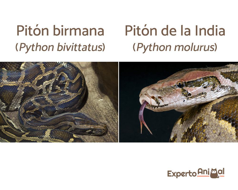 Com um tamanho e aparência semelhantes, encontramos também a píton birmanesa (Python bivittatus), que é encontrada principalmente no sudeste da Ásia e que pode atingir até 8 metros de comprimento, ainda que seja mais comum encontrá-la em tamanhos inferiores ao supracitado.