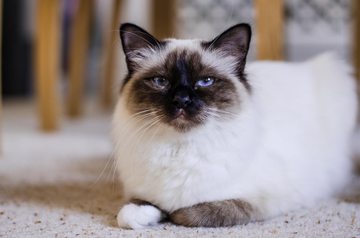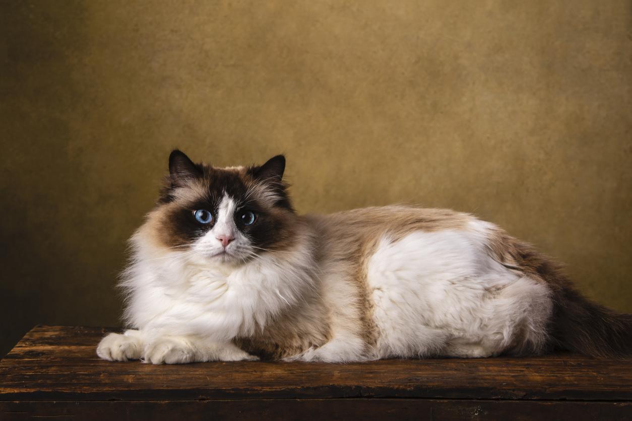O ragdoll é outro dos gatos tranquilos para casas e apartamentos por excelência. Possui uma peculiar "máscara" de pelo escuro ao redor de seus olhos azuis que o torna inconfundível. Este belo gato de origem estadunidense tem um corpo compacto e musculoso, uma pelagem densa e semi-longa que alcança seu comprimento máximo no pescoço e a causa, e patas robustas. O padrão desta raça aceita uma enorme quantidade de cores e padrões, entre os quais se destacam os exemplares de tons claros como o branco ou o creme com marcas de cor cinza, preta, avermelhada ou bege.