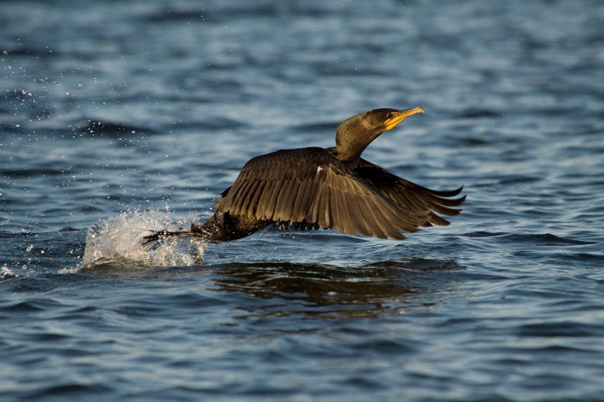 O corvo-marinho, do gênero Phalacrocorax, é uma ave marinha conhecida por sua habilidade de mergulhar e capturar peixes. Com plumagem escura, corpo aerodinâmico e bico afiado, está perfeitamente adaptado à vida aquática. Suas patas palmadas lhe permitem nadar com agilidade, enquanto sua plumagem parcialmente permeável reduz a flutuabilidade, facilitando o mergulho.