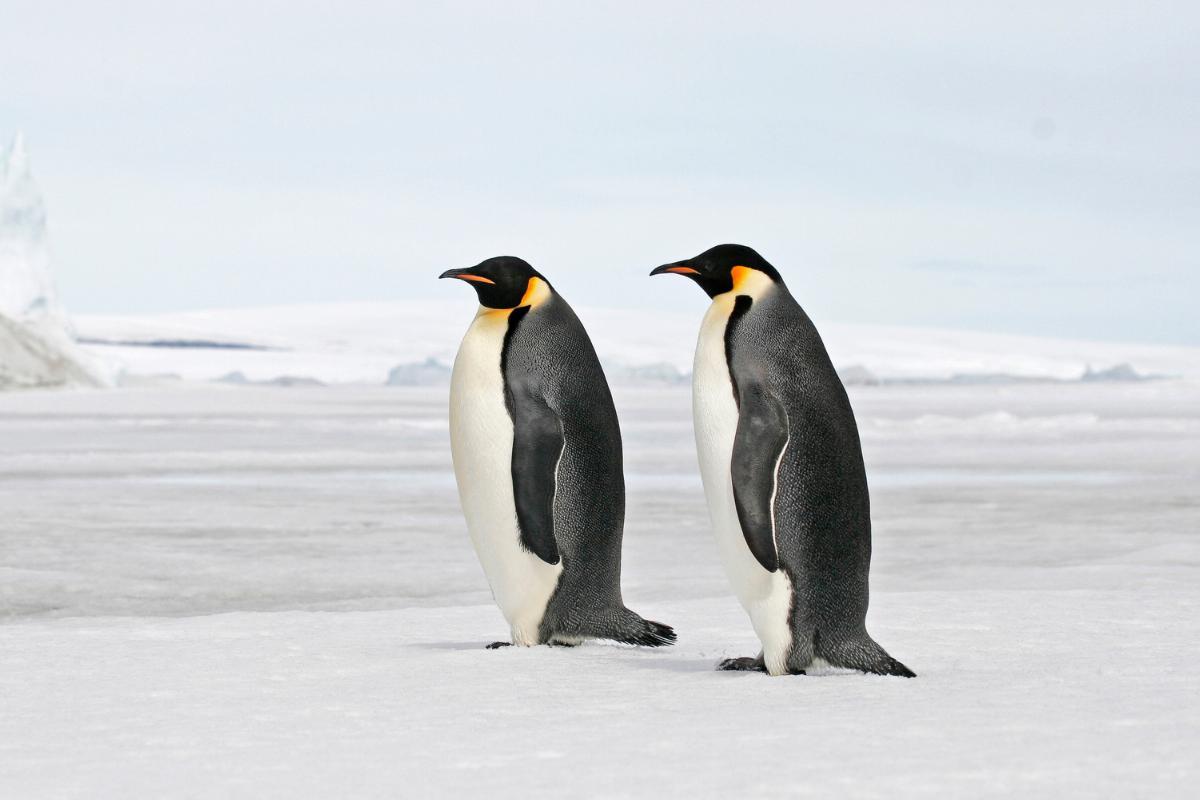 O pinguim-imperador é a maior espécie de pinguim e uma das mais icônicas, conhecida por sua adaptação extrema às duras condições da Antártica, mas todos os tipos de pinguins são aves marinhas. Os adultos podem atingir até 1,2 metros de altura e pesar entre 20 e 40 quilos. Sua característica plumagem, com costas pretas, peito branco e toques de amarelo na cabeça e no pescoço, proporciona excelente proteção térmica e camuflagem em seu ambiente gelado.