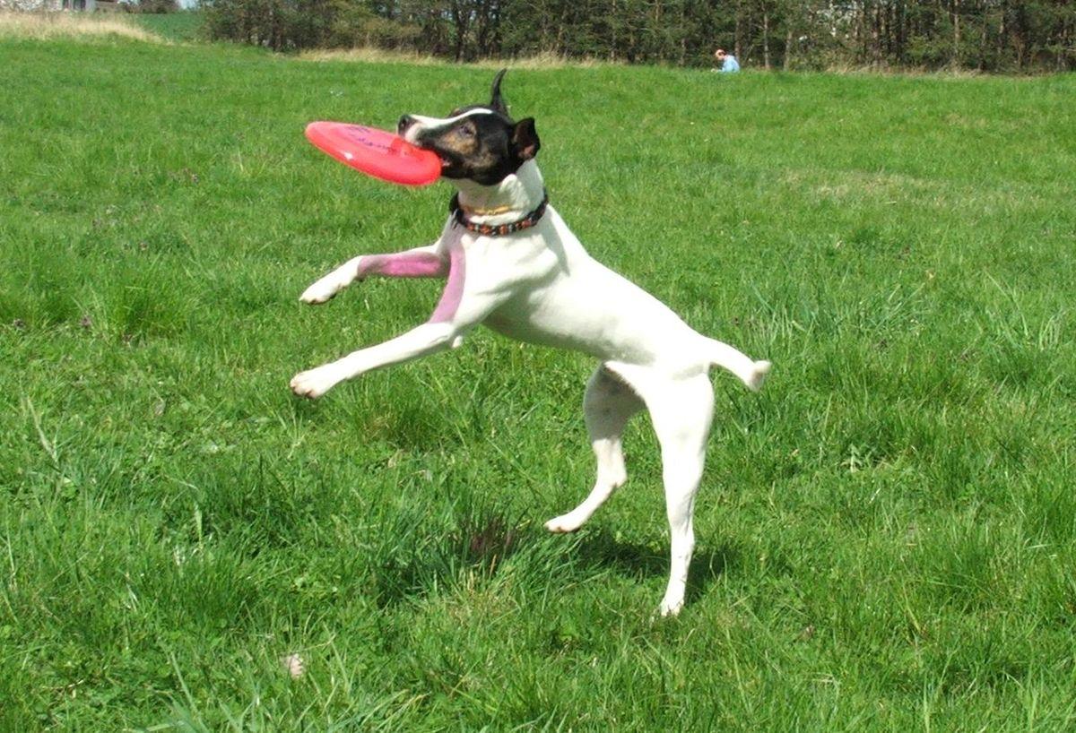 Outro brinquedo muito típico para cachorros é o frisbee ou disco voador. O frisbee em si é um bom brinquedo, uma vez que além de divertir muito o cachorro, ajuda-o a gastar muita energia facilmente, mas há que ter cuidado com o material do qual é feito o disco voador. O material ideal é a borracha, visto que o plástico duro ou materiais semelhantes facilmente magoam a boca e os dentes do cachorro.