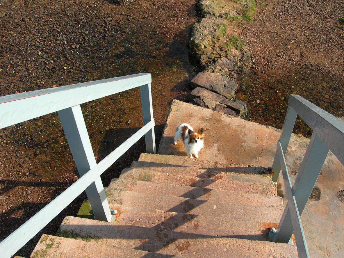 - Deve ir reduzindo o espaço que separa o cachorro das escadas, ou seja, tentar que a cada dia que passa ele brinque mais perto, mas sempre sem forçar, devemos fazer com que o nosso cachorro se aproxime por vontade própria.