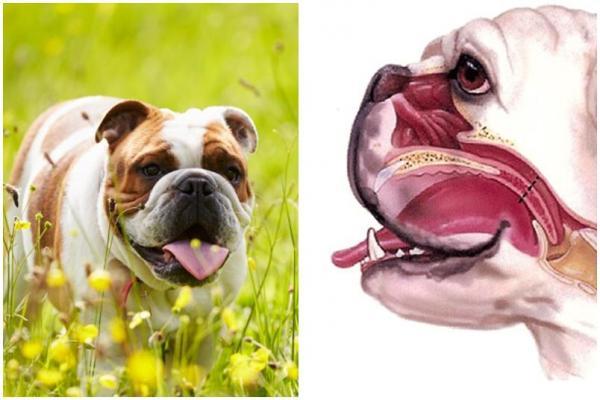 - Alongamento do palato mole: essa má formação pode causar um colapso laríngeo e deve ser encurtado através de cirurgia;