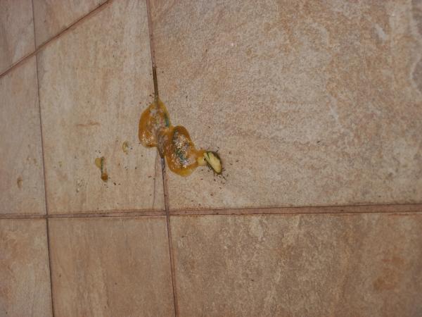 minha Pinscher comeu 3 pedaços de peixe empanado ontem e hoje vomitou desse jeito oq pode ser