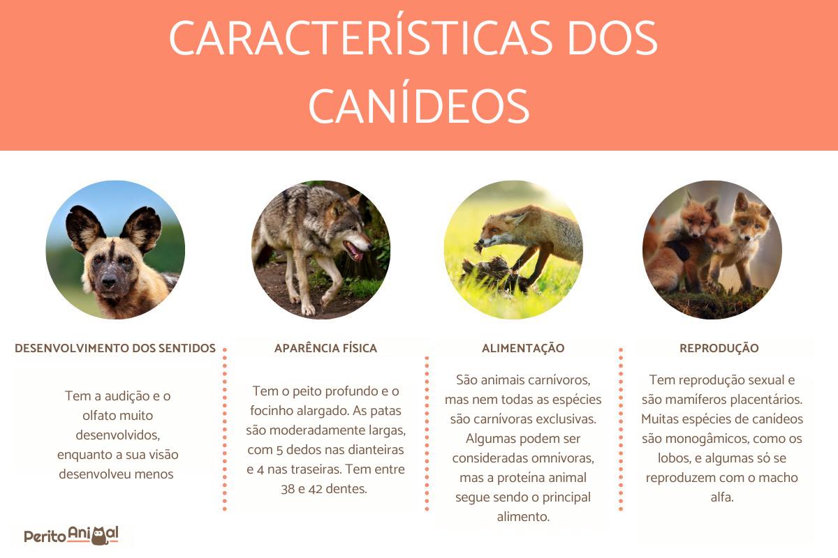 Conforme mencionado anteriormente, diferentes espécies possuem características distintas. No entanto, existem certas características comuns dos canídeos que podemos mencionar, como, por exemplo: