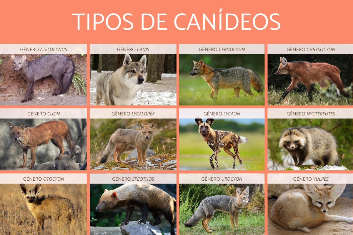 Estes animais formam um grupo diverso de diferentes gêneros, o que resulta em diferentes tipos de canídeos: