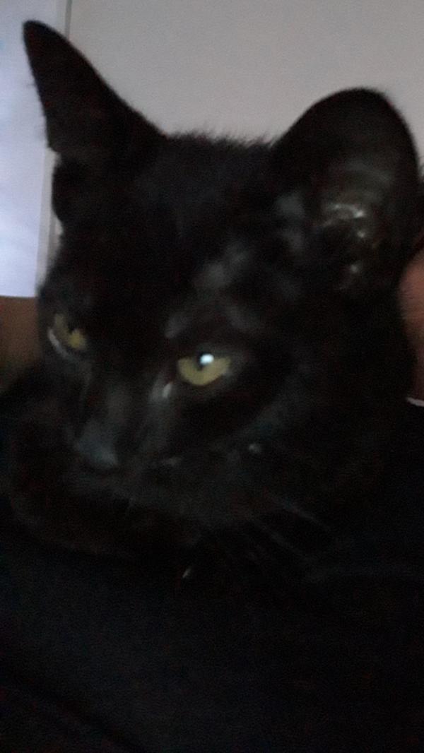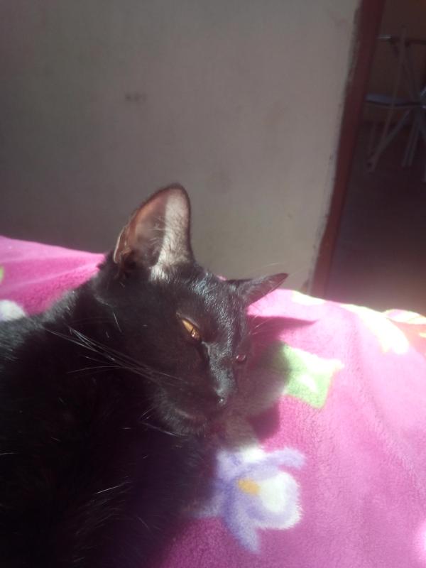 Adotei um gatinho preto a história foi andando na rua me Seguiu até em casa ele é muito inteligente, dócil,carinhoso escadinha,e é tão estranho ele tem um cheiro que os outros gatos não têm,já atende o nome de guto.
