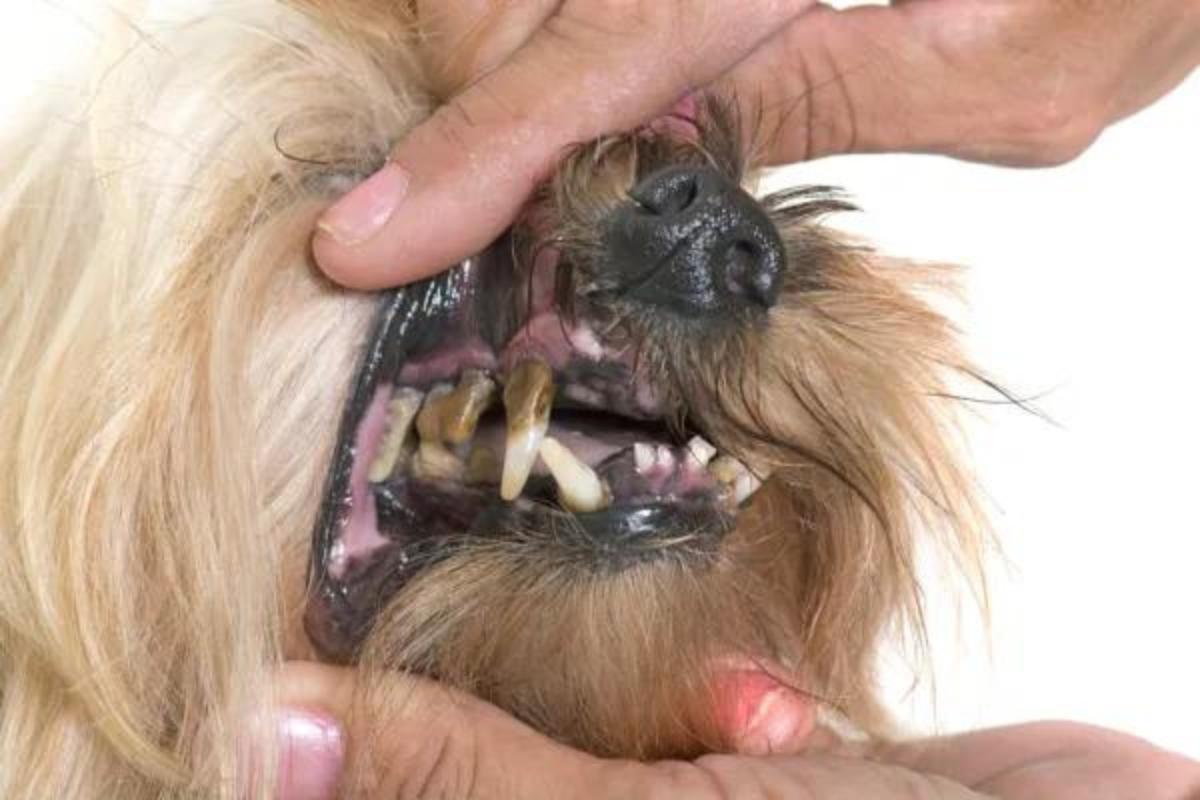 Cabe destacar como principal causa do cheiro de peixe em cachorros o tártaro e a doença periodontal que consiste na calcificação da placa bacteriana (bactérias bucais unidas a proteína e restos de alimentos) no esmalte dental por depósito de minerais da saliva.
