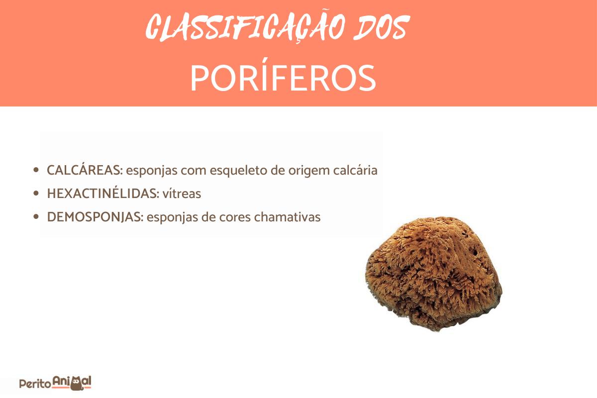 A este grupo pertencem as esponjas, cuja principal característica é que seus corpos possuem grande quantidade de poros e um sistema de canais internos que filtram o alimento. São sésseis e dependem em grande parte que a água circule através deles para obter alimento e oxigênio. Não apresentam tecido verdadeiro e portanto nem órgãos. São exclusivamente aquáticos, principalmente marinhos, embora existam algumas espécies que habitam águas doces. Outra característica fundamental é que são formados por carbonato de cálcio ou de sílica e colágeno.