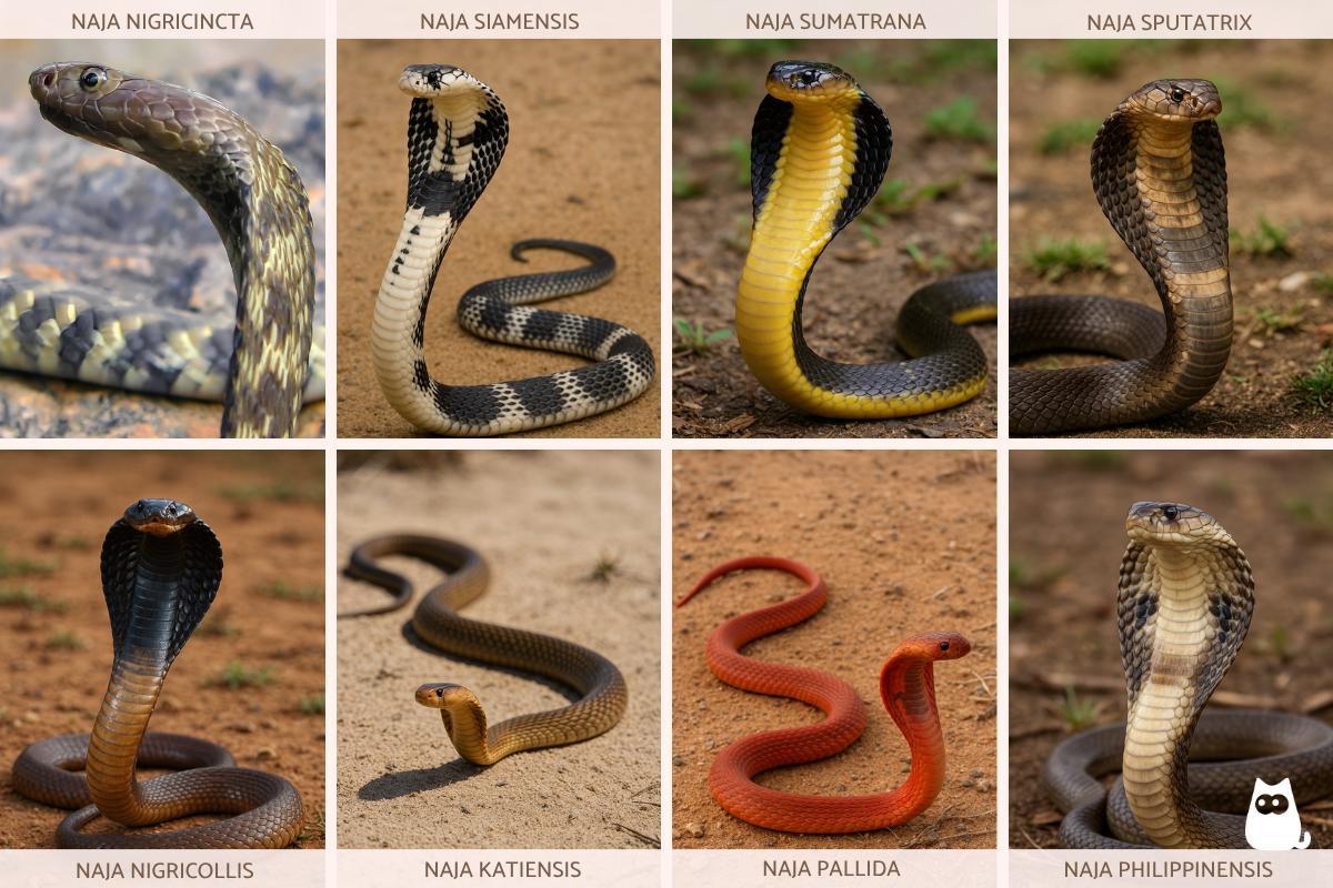 - Naja sumatrana: nativa da Indonésia, Tailândia, Filipinas e Malásia. Estado de conservação: "pouco preocupante";