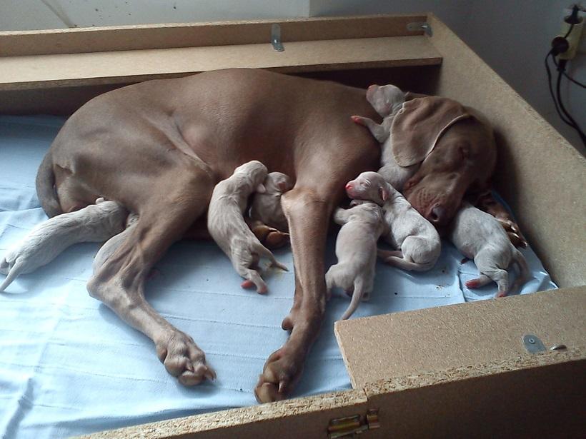 - Cada filhote deve ser lambido pela mãe para remover as membranas da face e estimular a respiração, se isso não ocorrer dentro de 1 a 3 minutos após o nascimento, deve ser feito pelo cuidador. É preciso secar com toalhas limpas, em sentido contrário ao pelo, para remover os fluidos das pequenas vias respiratórias, pode introduzir o dedo mindinho na boca e limpar o nariz e assim começará a respirar por conta própria.