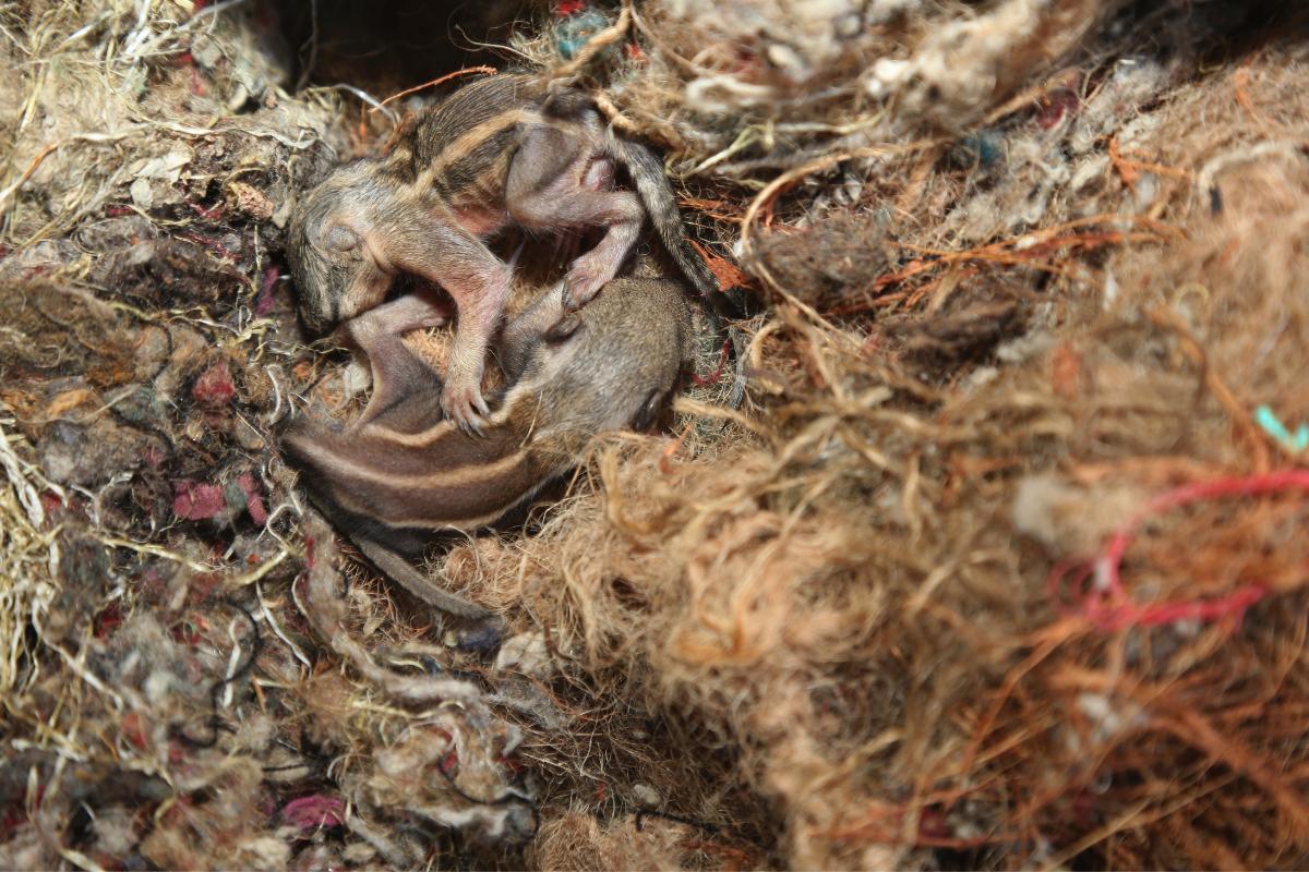 De acordo com o tipo de esquilo, as fêmeas preparam um ninho em locais como troncos ocos, galhos densos ou tocas subterrâneas, utilizando folhas, musgo e pelos para garantir o conforto e a segurança das crias.