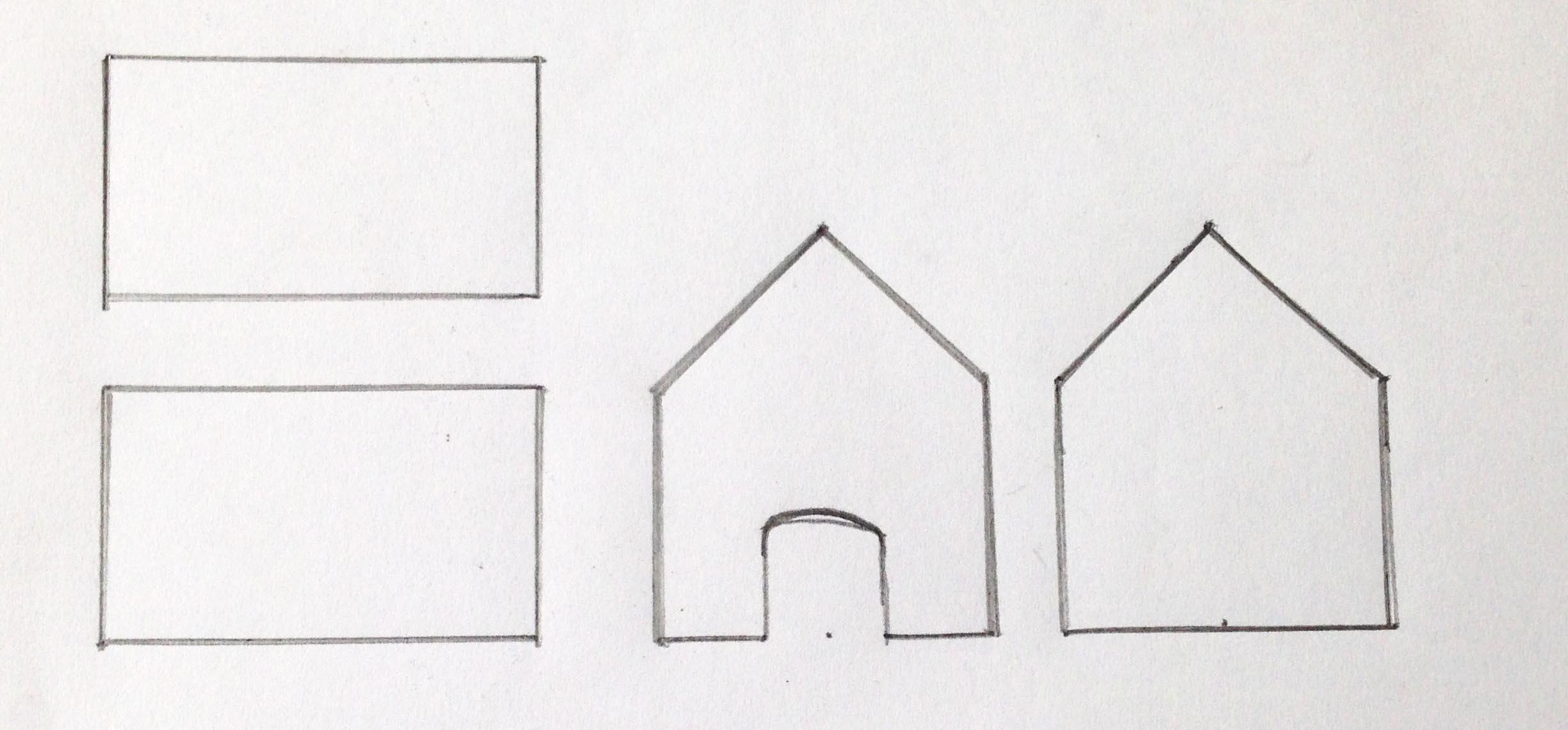 Para fazer o telhado, você deve cortar duas tábuas correspondentes à entrada e a parede traseira deve acabar em triângulo. Tudo numa mesma tábua, nunca em duas.