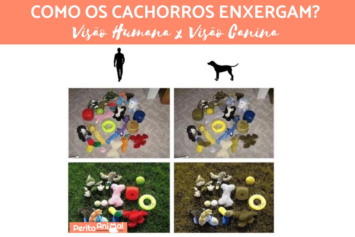 No PeritoAnimal já te dissemos quais as cores que os cães vêem de acordo com vários estudos científicos, onde você ficará surpreso ao saber que os cães não são capazes de diferenciar o vermelho do verde, assim como muitas outras curiosidades sobre a visão e as cores caninas.