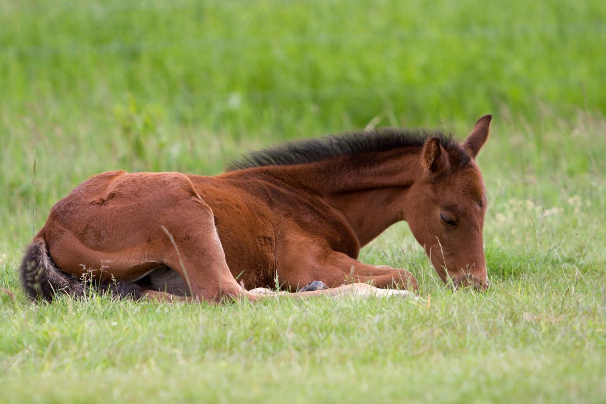 Embora os cavalos possam descansar em pé durante boa parte do dia, precisam se deitar para alcançar o sono profundo ou REM (movimentos oculares rápidos). Nessa posição, seus músculos se relaxam completamente, algo indispensável para essa fase do sono. Quando se deitam, geralmente procuram um lugar confortável e seguro, como um solo macio ou sua cama no estábulo, e preferem fazê-lo quando estão em grupo, pois outros membros podem vigiar enquanto descansam.